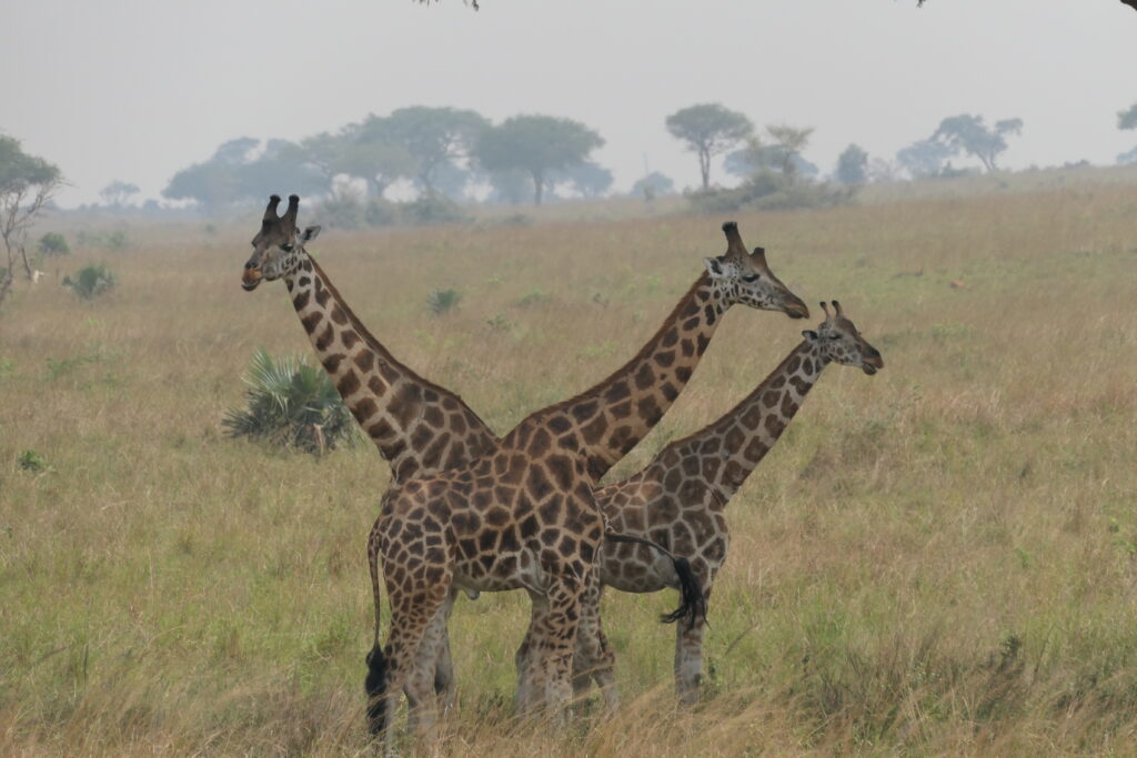 Und als ob die Reise nicht schon reich genug wäre, wandern wir Seite an Seite mit eleganten Giraffen im Lake Mburo Nationalpark – ein Spaziergang, der die Grenzen zwischen Mensch und Tier verschwimmen lässt. Und schließlich, fast wie ein Gruß aus einer anderen Welt, zeigt sich der majestätische Schuhschnabelstorch im Bereich des Viktoriasees – ein Vogel, der aussieht, als sei er einem Märchen entsprungen.